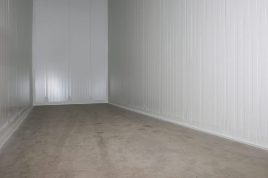 Todas las costuras de las esquinas son estancas al gas y tienen un acabado higiénico. Las costuras del panel se tratan hasta 50 cm. Si se agrega un parachoques más adelante para evitar daños causados por las carretillas elevadoras, las costuras detrás de él ya están selladas. Con las líneas agregadas, es posible trabajar ordenadamente en los almacenes. Ahora deja que venga la fruta.
